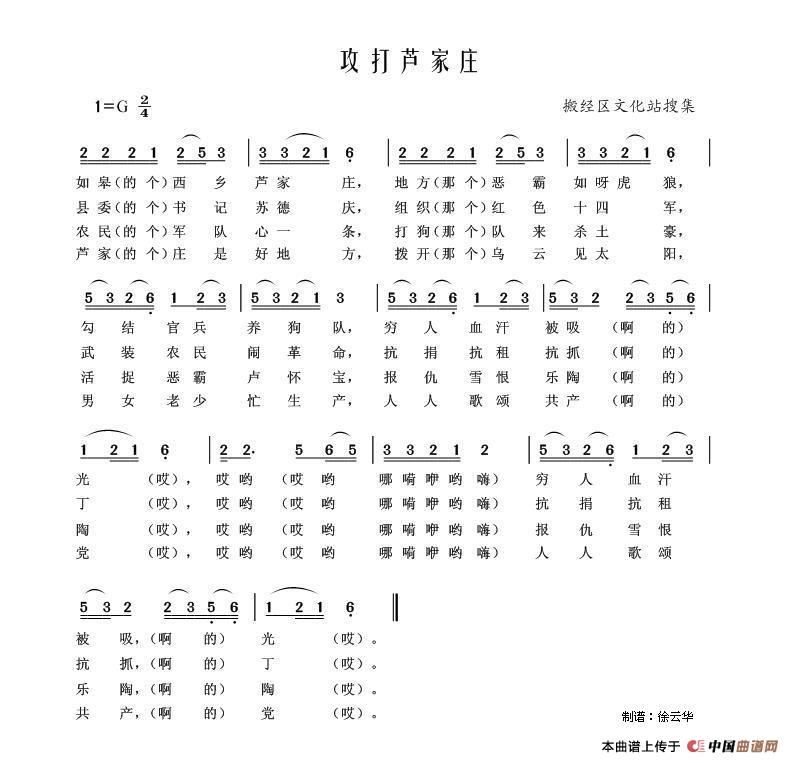 关于《攻打芦家庄》曲谱的评论