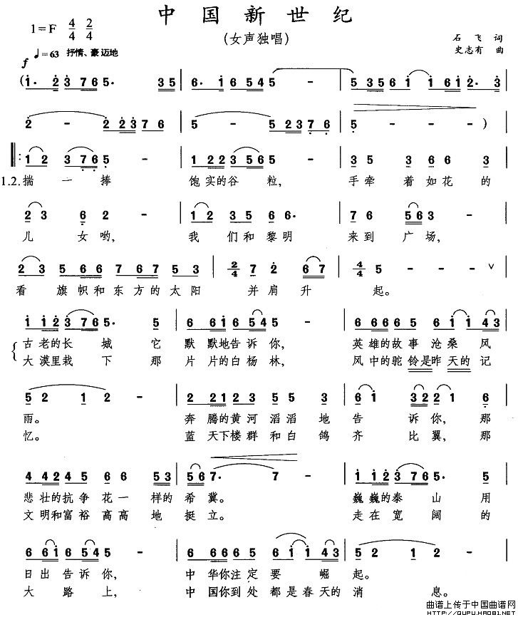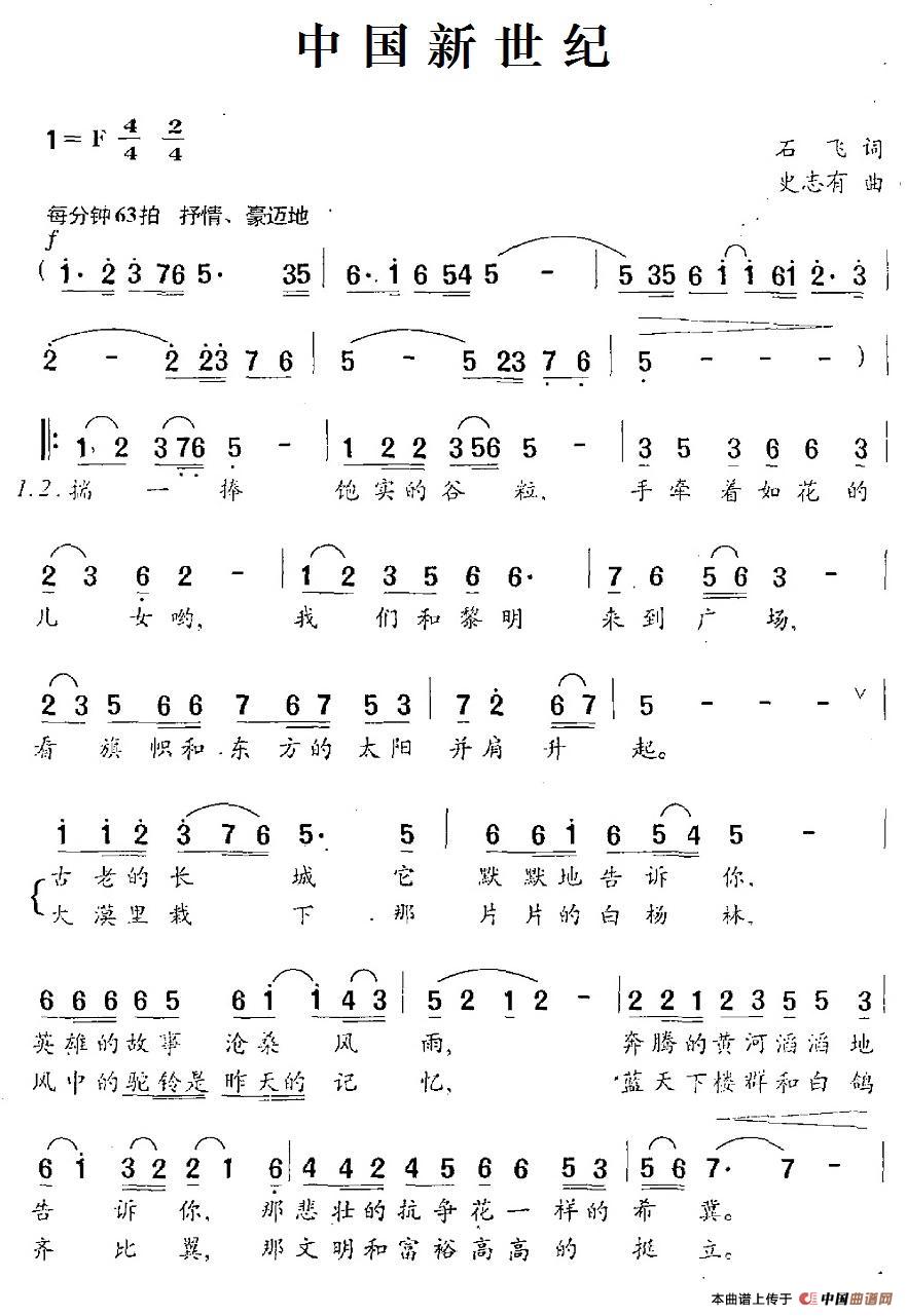 当前位置: 首页 民歌曲谱 五字歌名 中国新世纪
