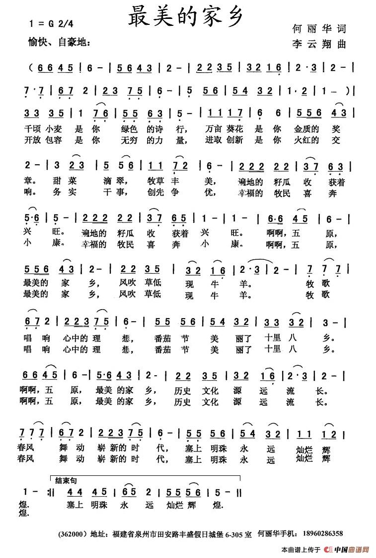 关于《最美的家乡》曲谱的评论