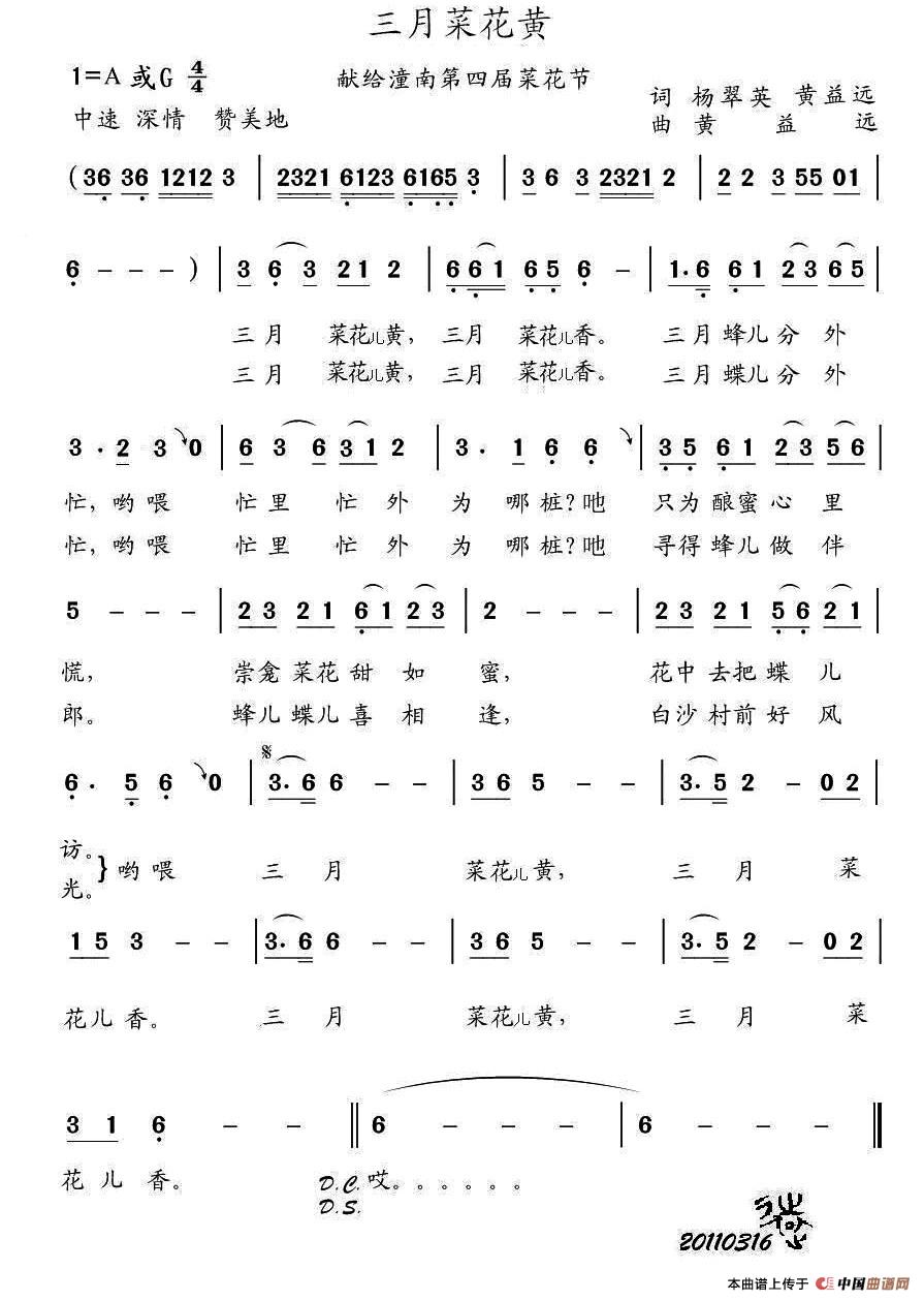 关于《三月菜花黄》曲谱的评论