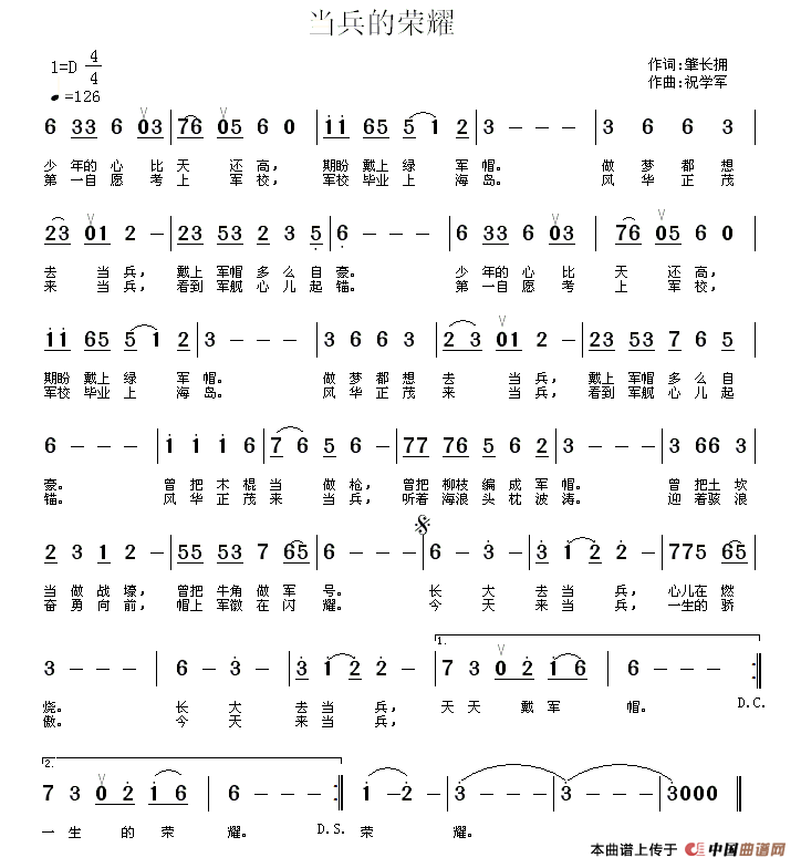 关于《当兵的荣耀》曲谱的评论