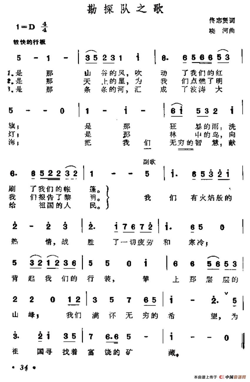 关于《勘探队之歌》曲谱的评论