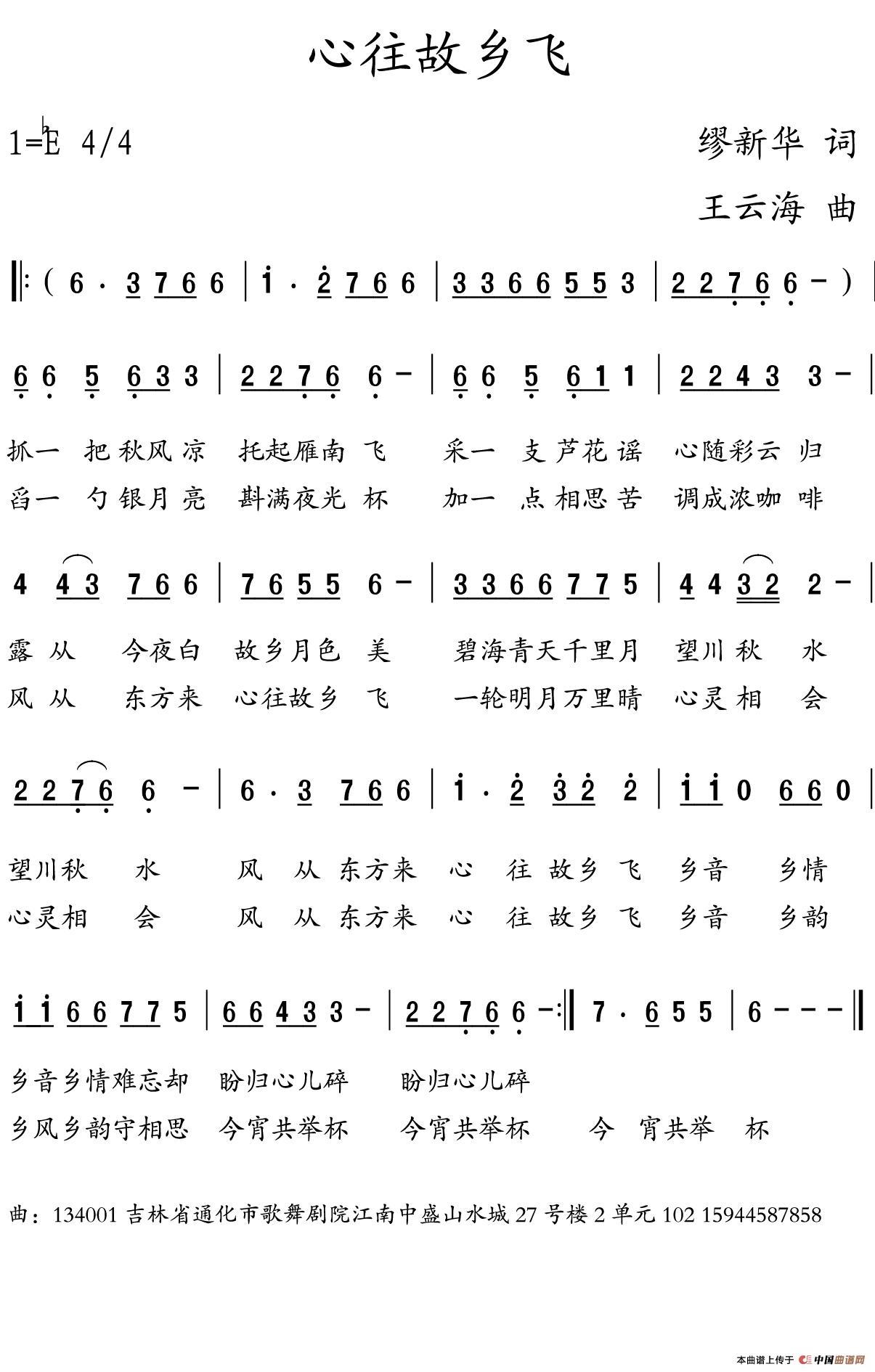 关于《心往故乡飞》曲谱的评论