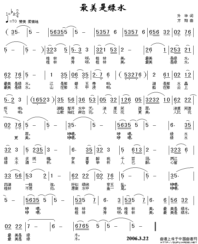 关于《最美是绿水》曲谱的评论