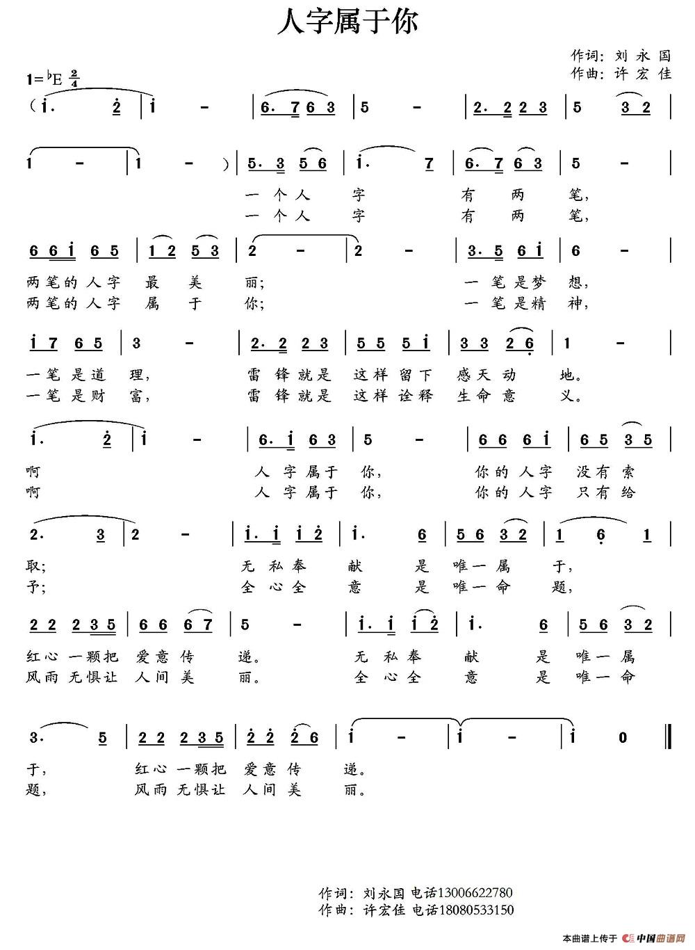 关于《人字属于你》曲谱的评论