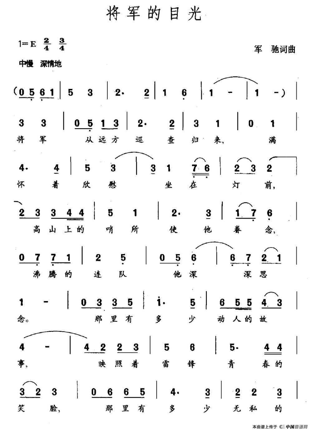 关于《将军的目光》曲谱的评论