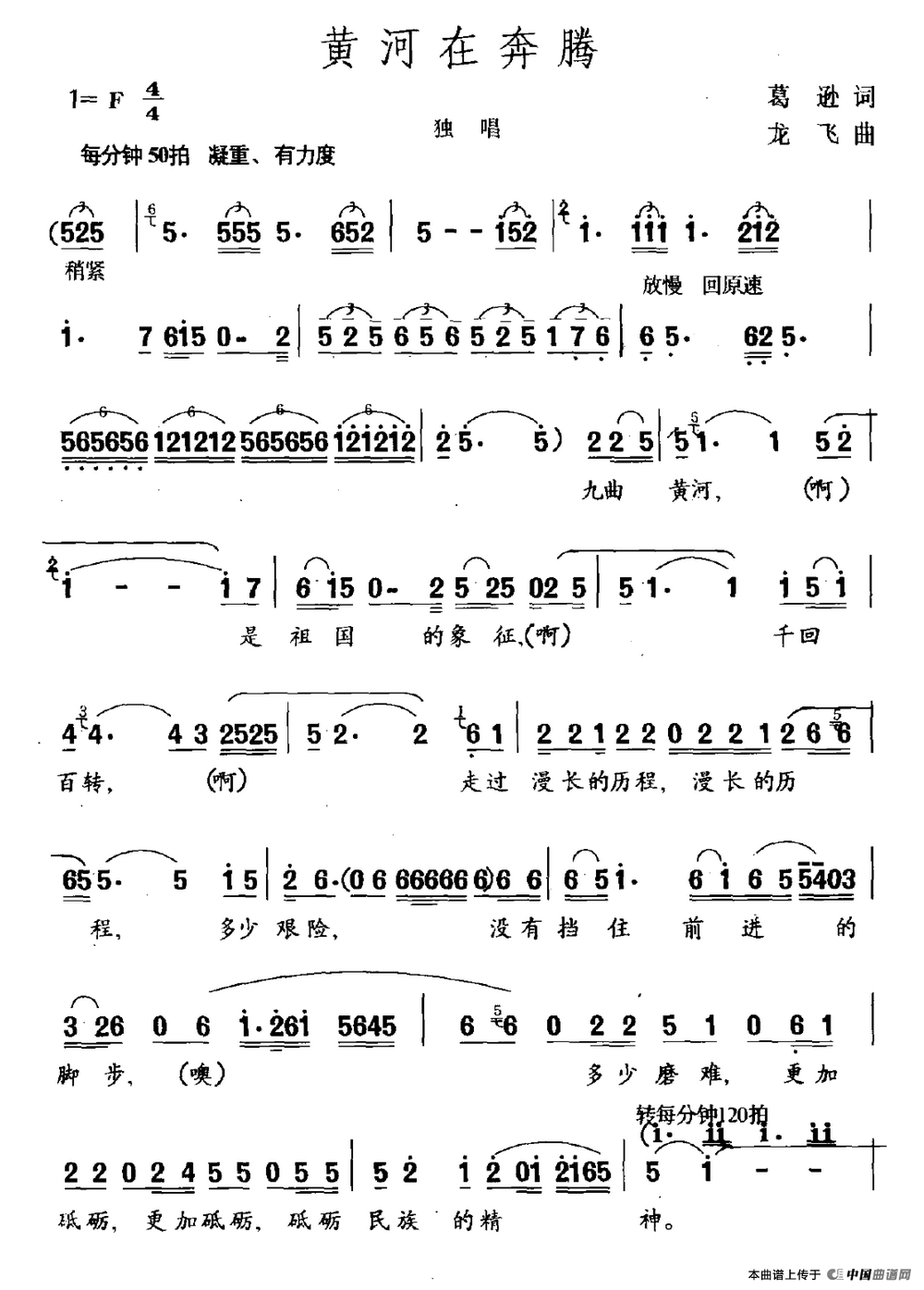 关于《黄河在奔腾》曲谱的评论