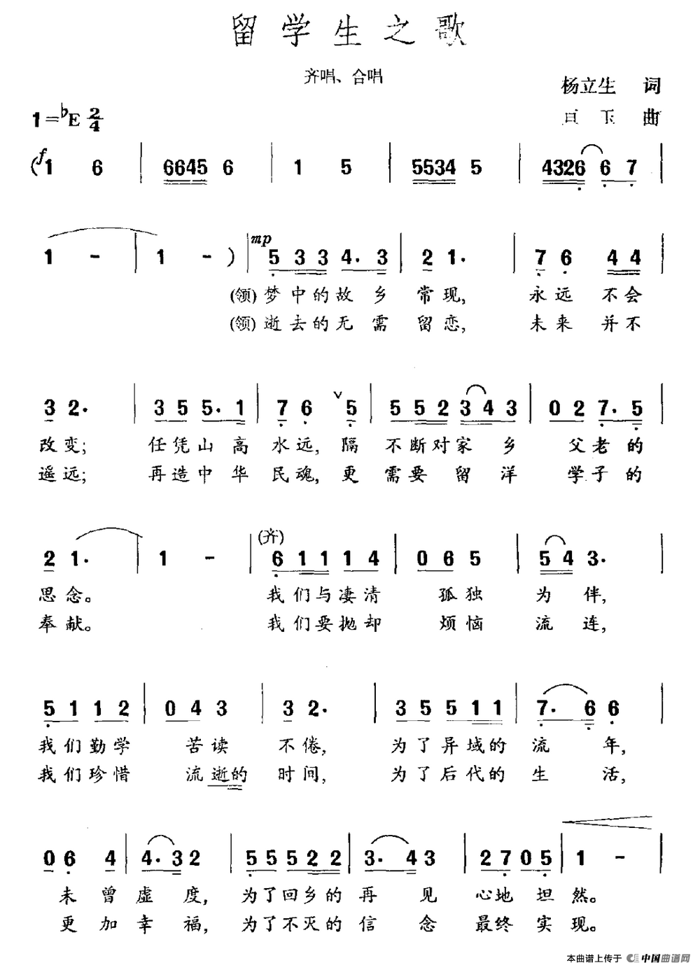 作词:杨立生 作曲:亘玉 来源:《中国曲谱网》 上传:沉舟侧畔过