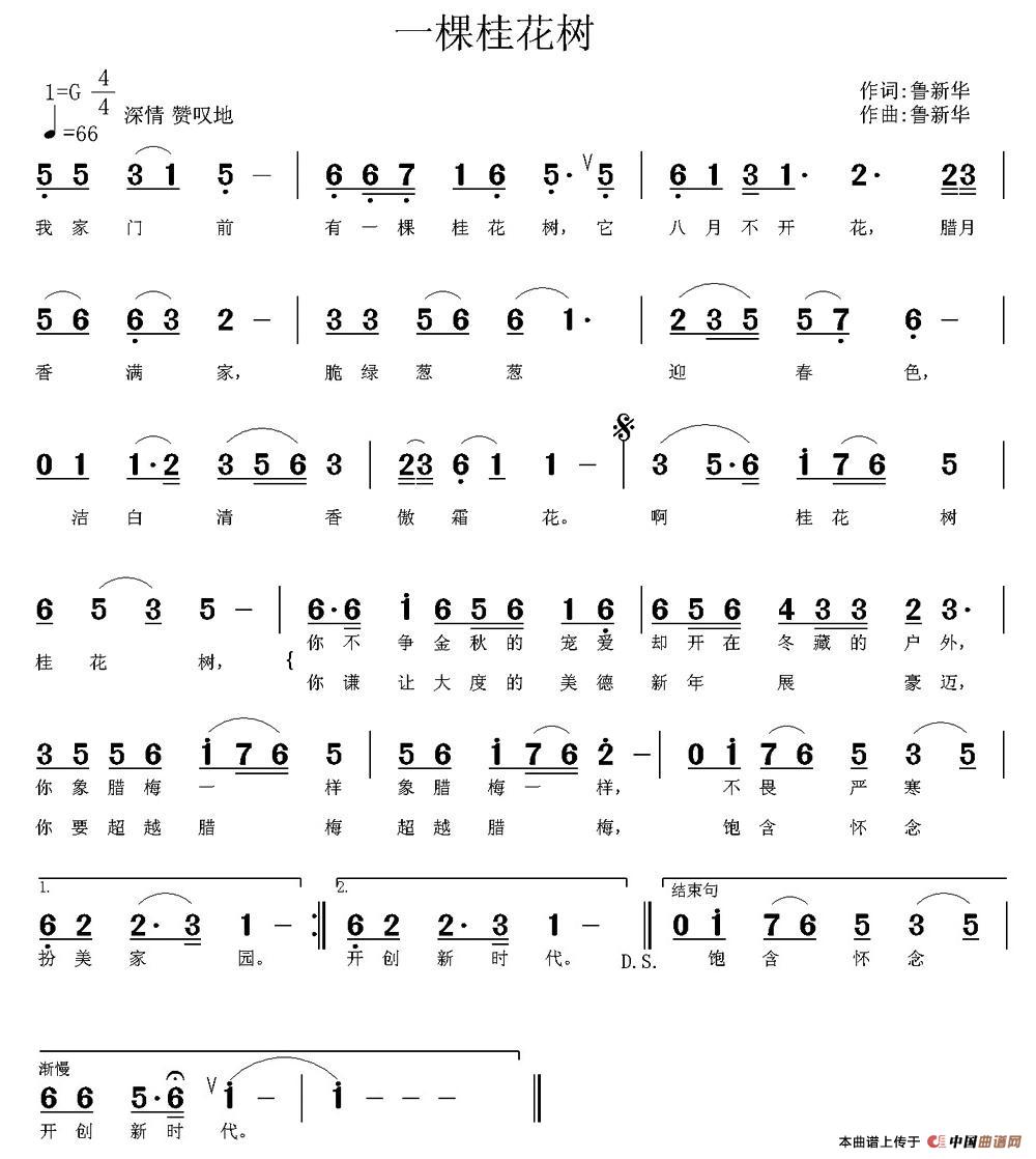 关于《一棵桂花树》曲谱的评论