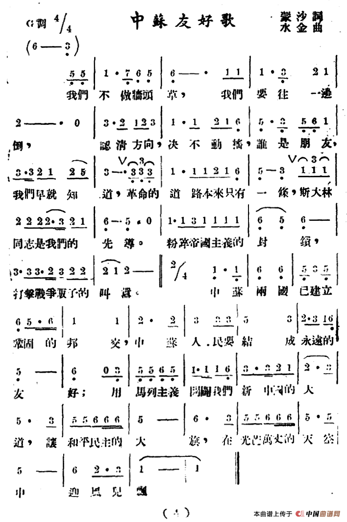 中苏友好歌(蒙沙词 水金曲)