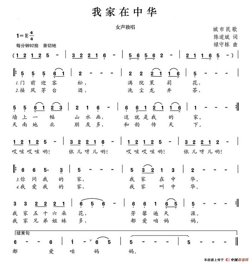 关于《我家在中华》曲谱的评论