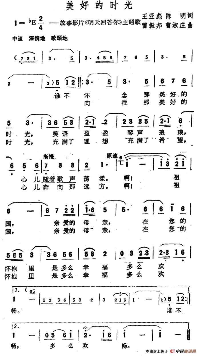 作词:王亚彪、陈明 作曲:雷振邦、曹淑庄 来源:《中国曲谱网》 上传:秋叶起舞