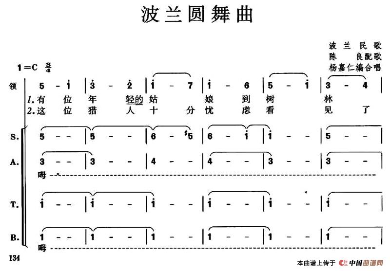 作曲:波兰民歌、陈良配歌、杨嘉仁编合唱 来源:《中国曲谱网》 上传:秋叶起舞