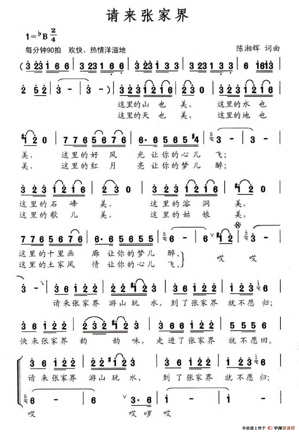 关于《请来张家界》曲谱的评论