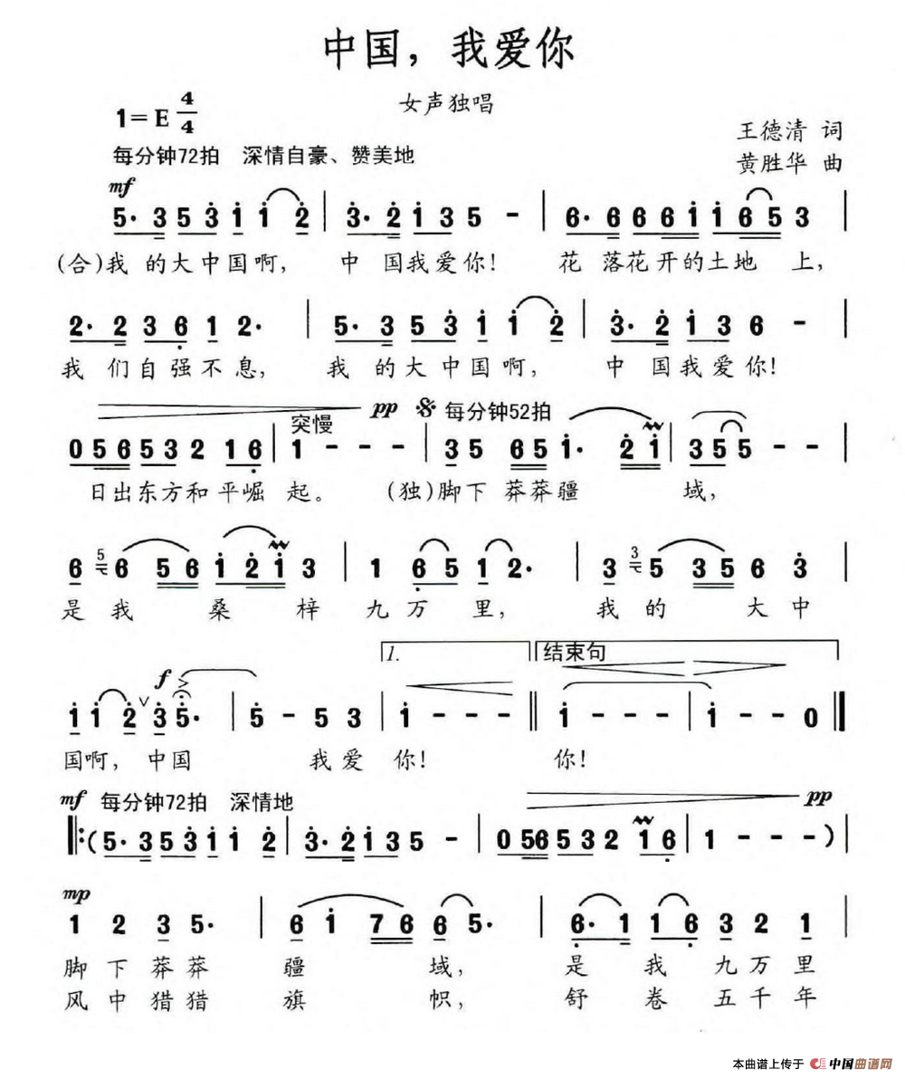 关于《中国,我爱你》曲谱的评论