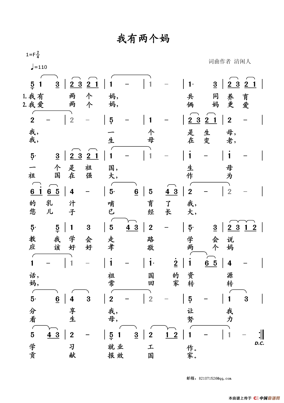 ⒉我爱两个妈,俩妈更爱我,生母在变老,祖国在强大,