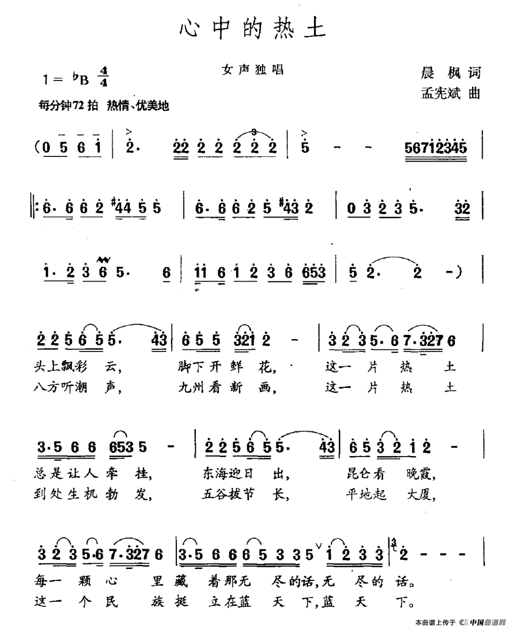 关于《心中的热土》曲谱的评论