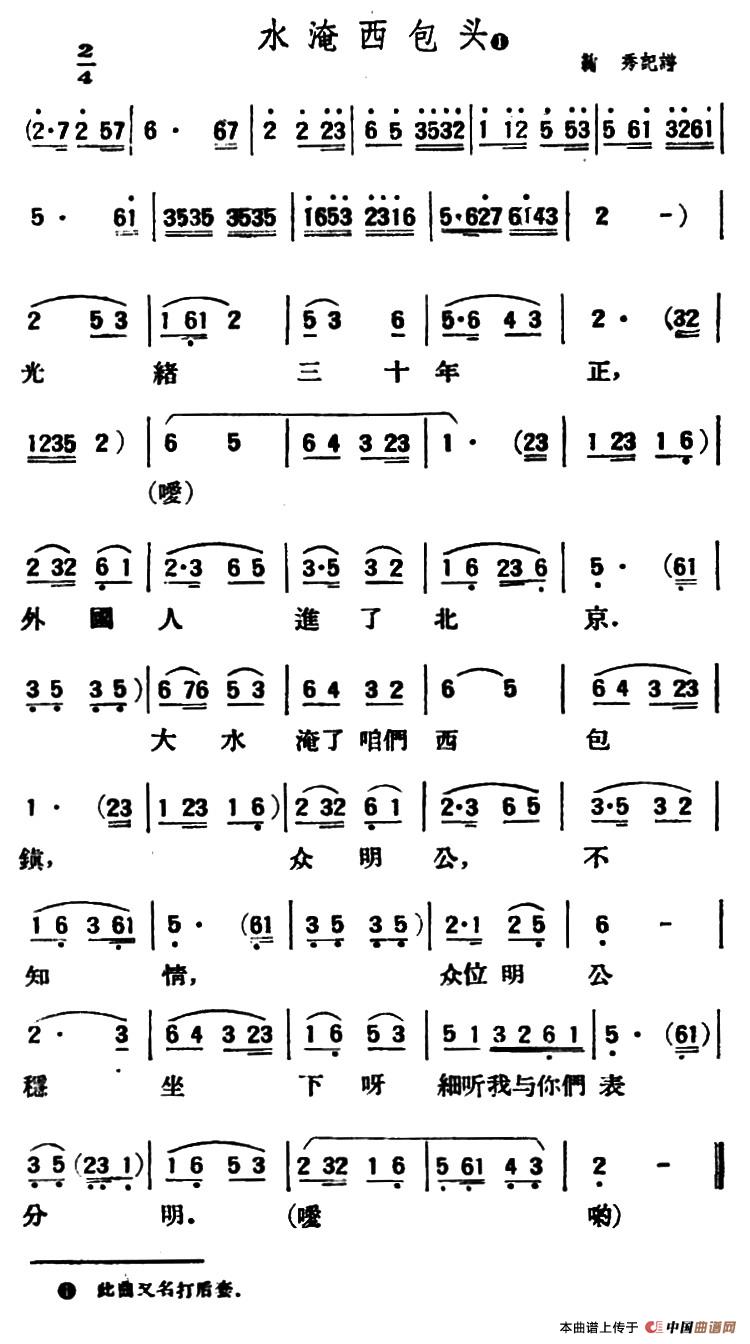 关于《水淹西包头》曲谱的评论