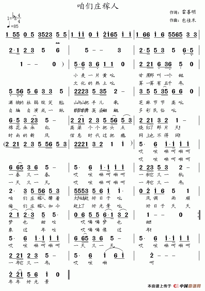 关于《咱们庄稼人》曲谱的评论