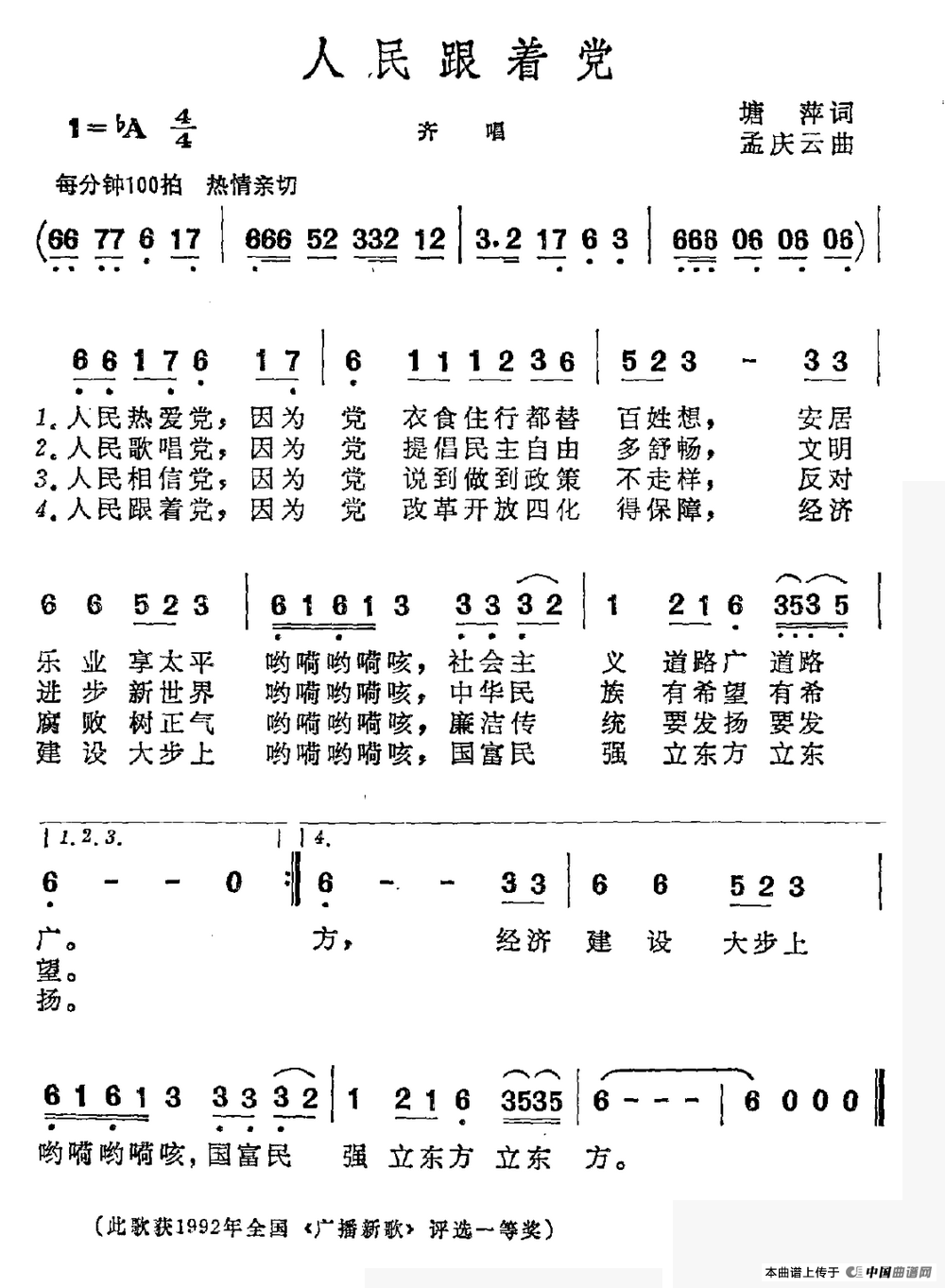关于《人民跟着党》曲谱的评论