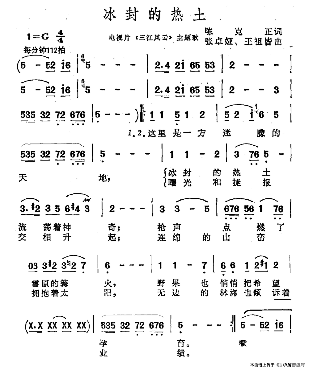 关于《冰封的热土》曲谱的评论