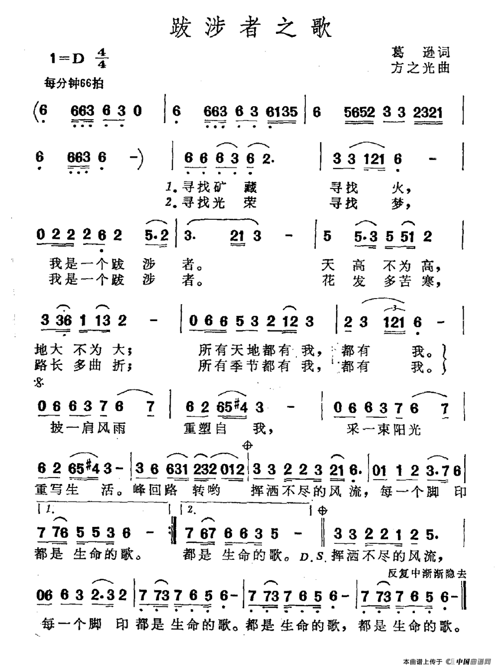 关于《跋涉者之歌》曲谱的评论