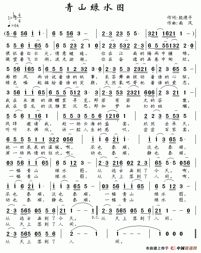 提示:在曲谱图片上单击右键,选择“图片另存为...”即可将曲谱保存到您的电脑中,打印时候可将图片插入到WORD中,调整合适大小打印即可。
