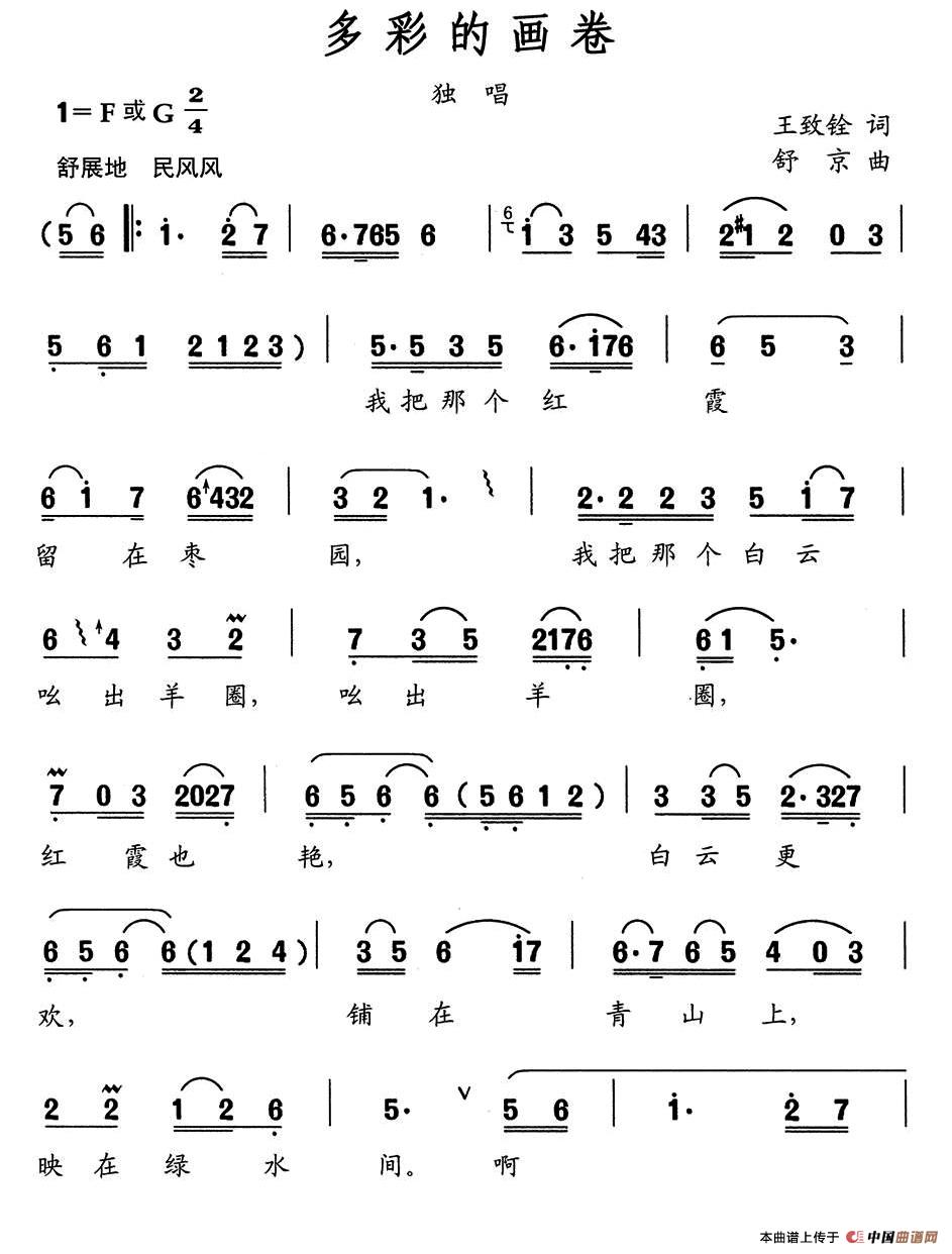 致谢:《中国曲谱网》衷心感谢作者老师馈赠原版歌谱!