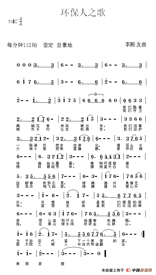 关于《环保人之歌》曲谱的评论
