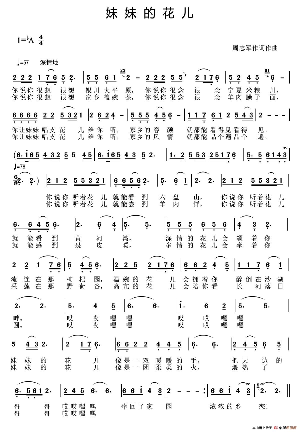 关于《妹妹的花儿》曲谱的评论
