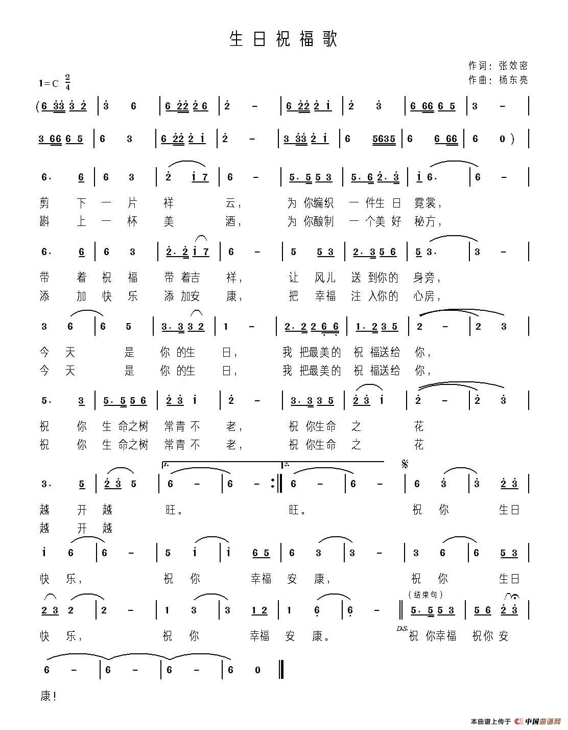 致谢:《中国曲谱网》衷心感谢作者老师馈赠原版歌谱!