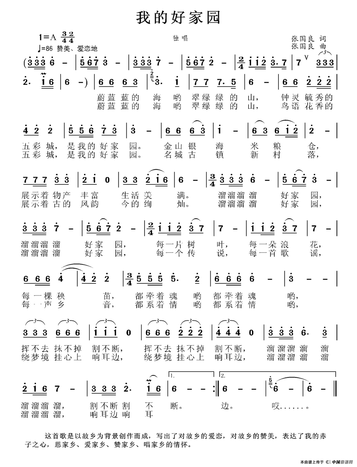关于《我的好家园》曲谱的评论