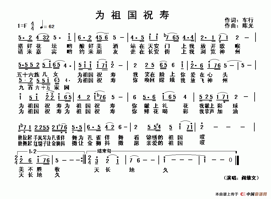 致谢:《中国曲谱网》衷心感谢作者老师馈赠原版歌谱!