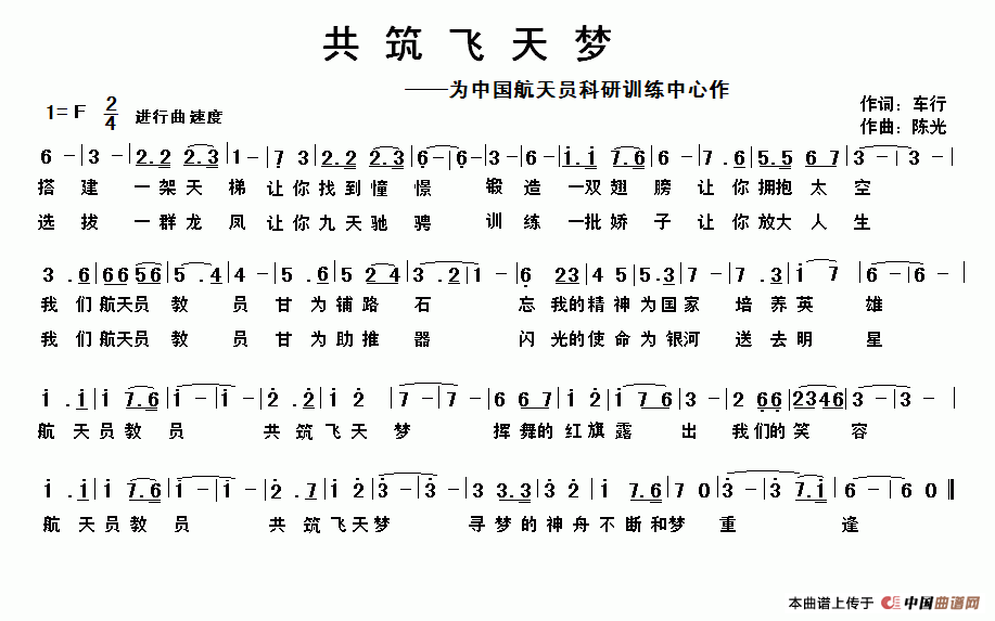 关于《共筑飞天梦》曲谱的评论