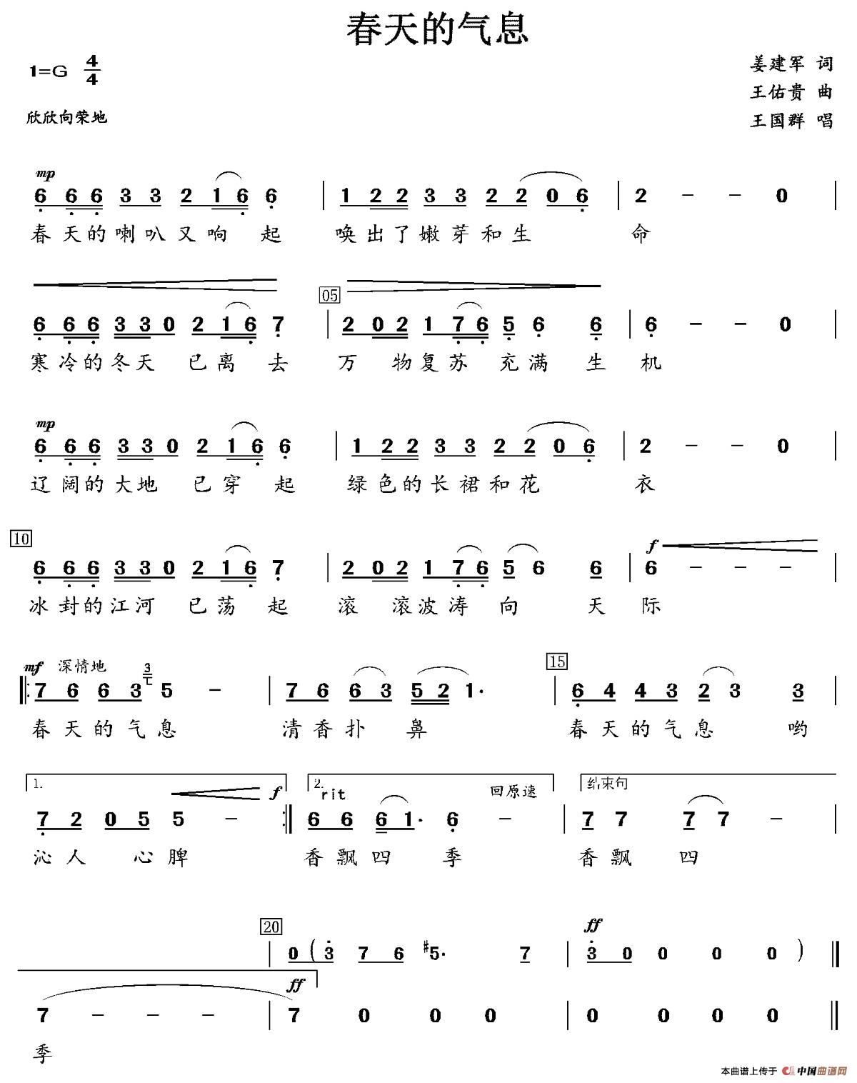 致谢:《中国曲谱网》衷心感谢作者老师馈赠原版歌谱!
