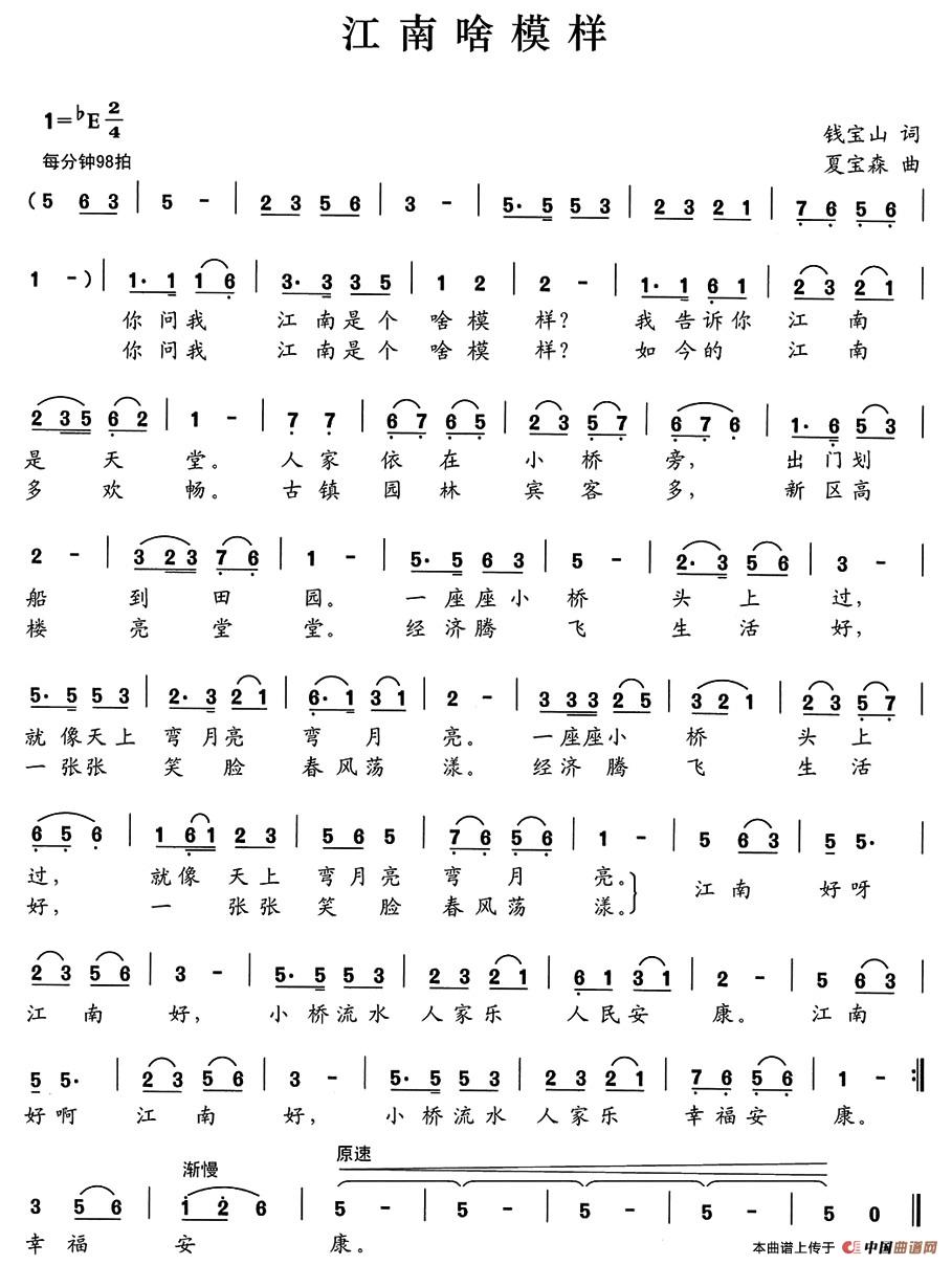 致谢:《中国曲谱网》衷心感谢作者老师馈赠原版歌谱!