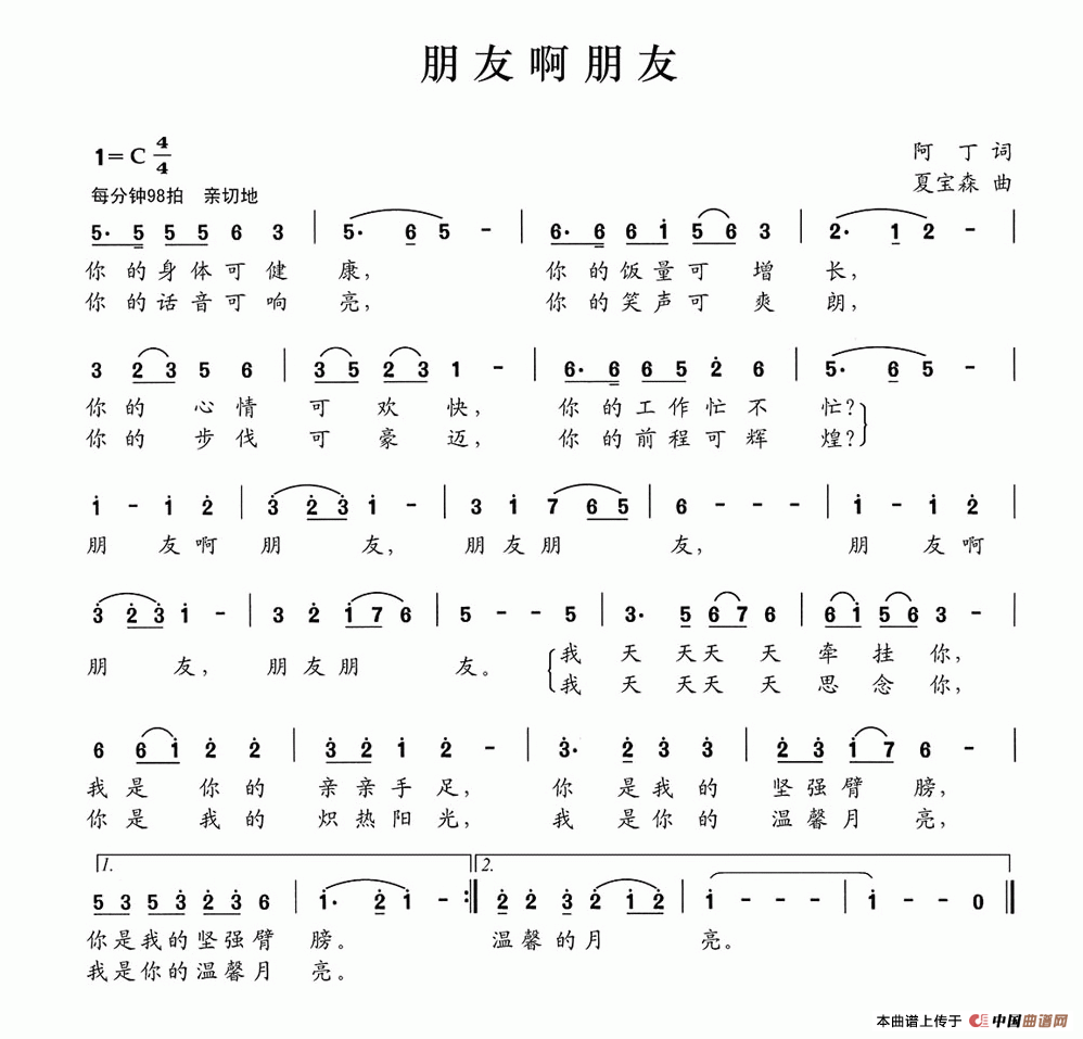 致谢:《中国曲谱网》衷心感谢作者老师馈赠原版歌谱!
