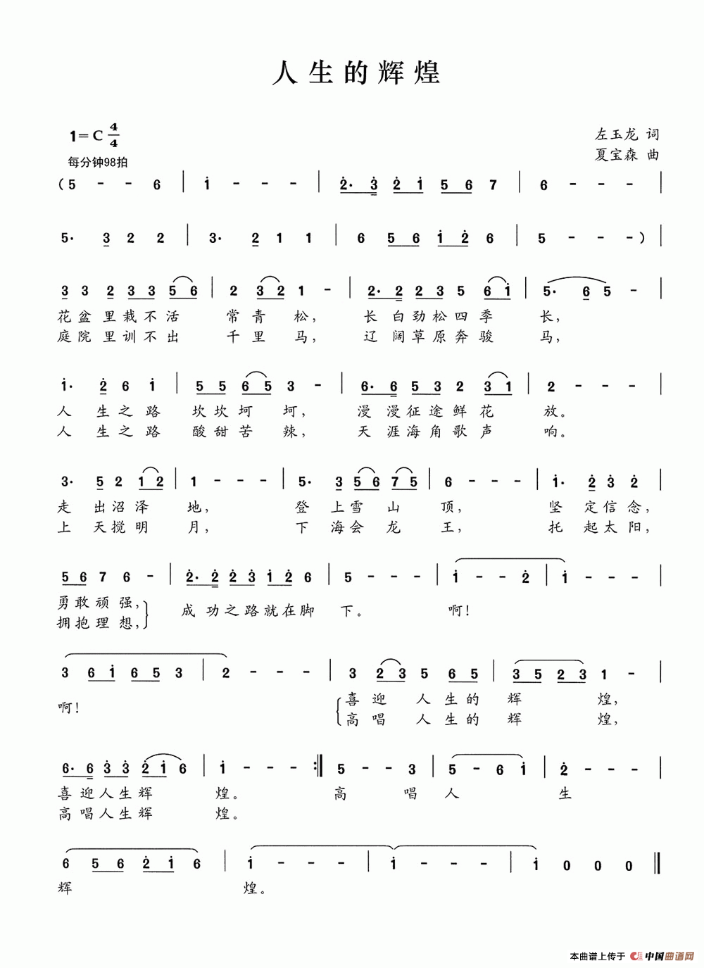 致谢:《中国曲谱网》衷心感谢作者老师馈赠原版歌谱!