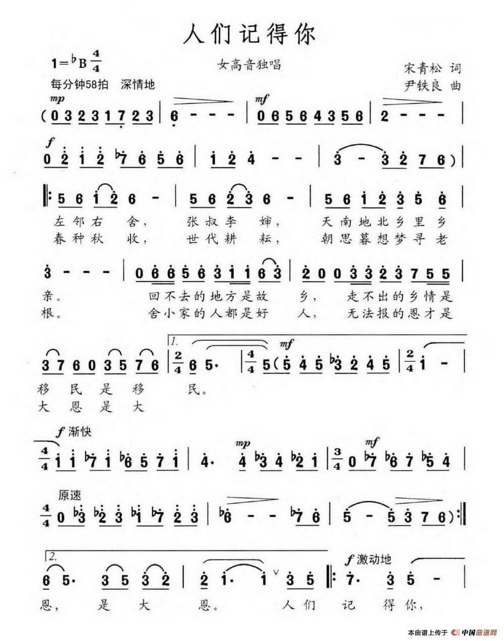 关于《人们记得你》曲谱的评论
