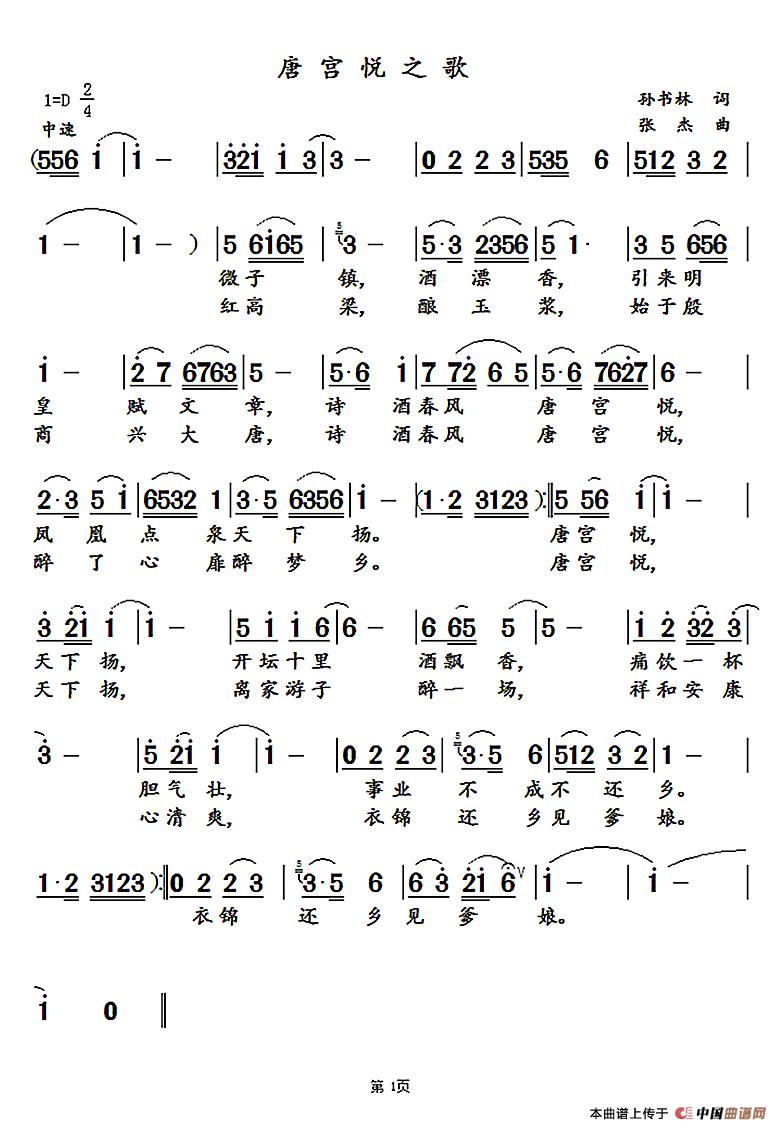 关于《唐宫悦之歌》曲谱的评论