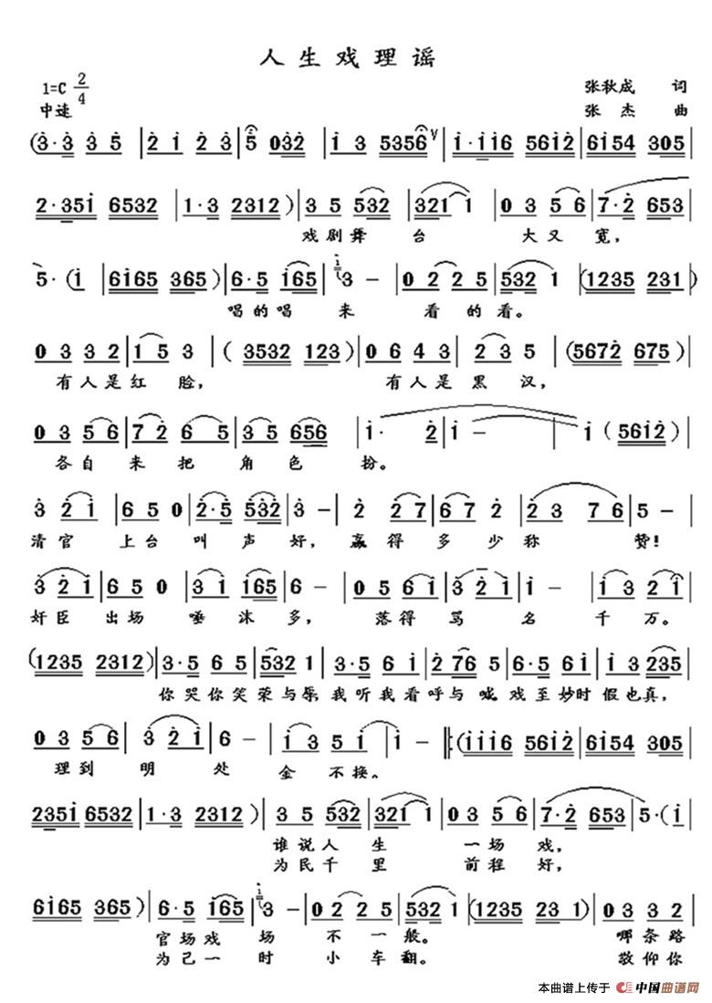 关于《人生戏理谣》曲谱的评论