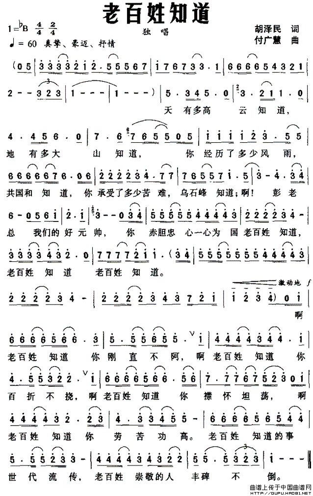 关于《老百姓知道》曲谱的评论