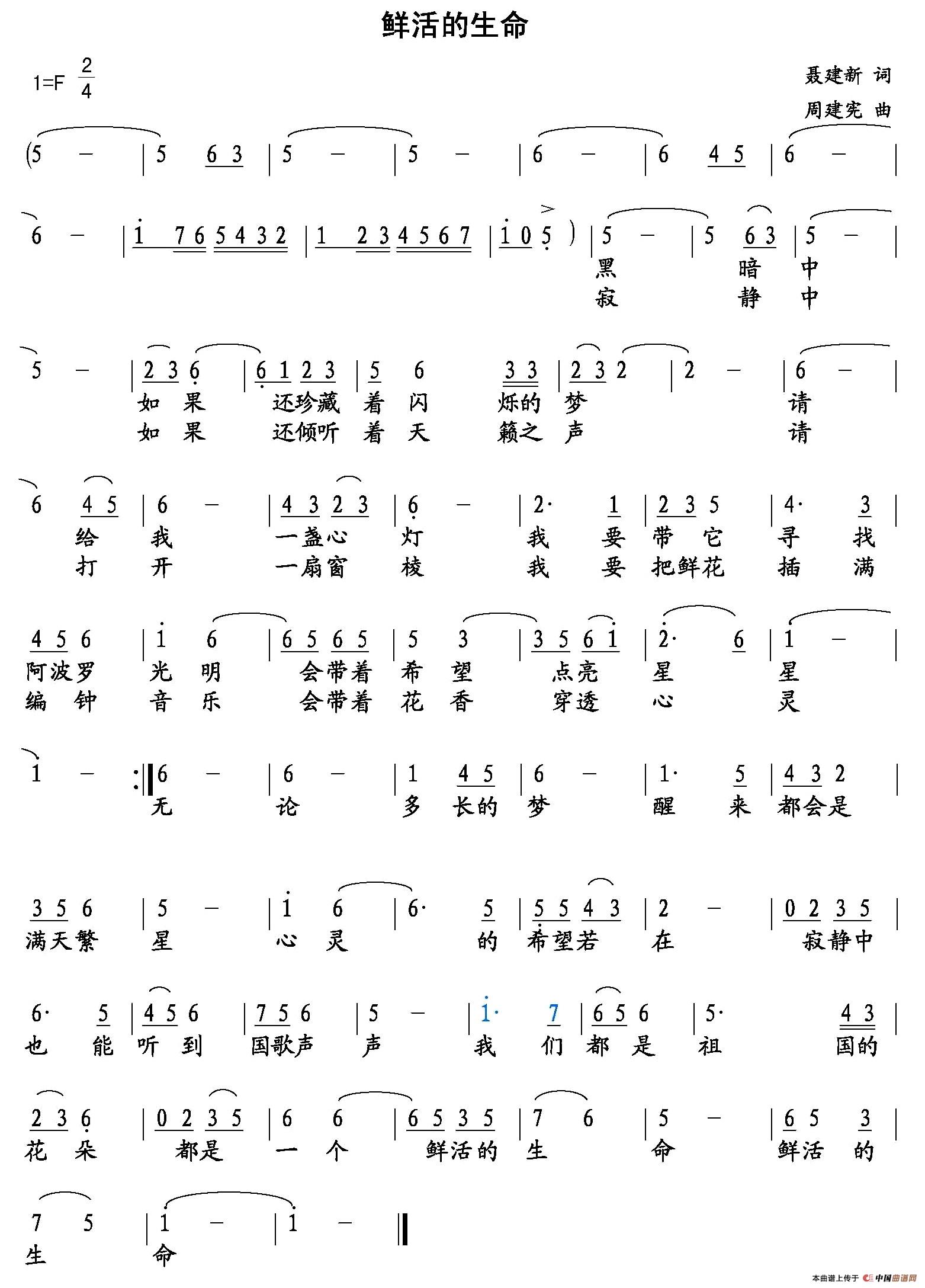 关于《鲜活的生命》曲谱的评论