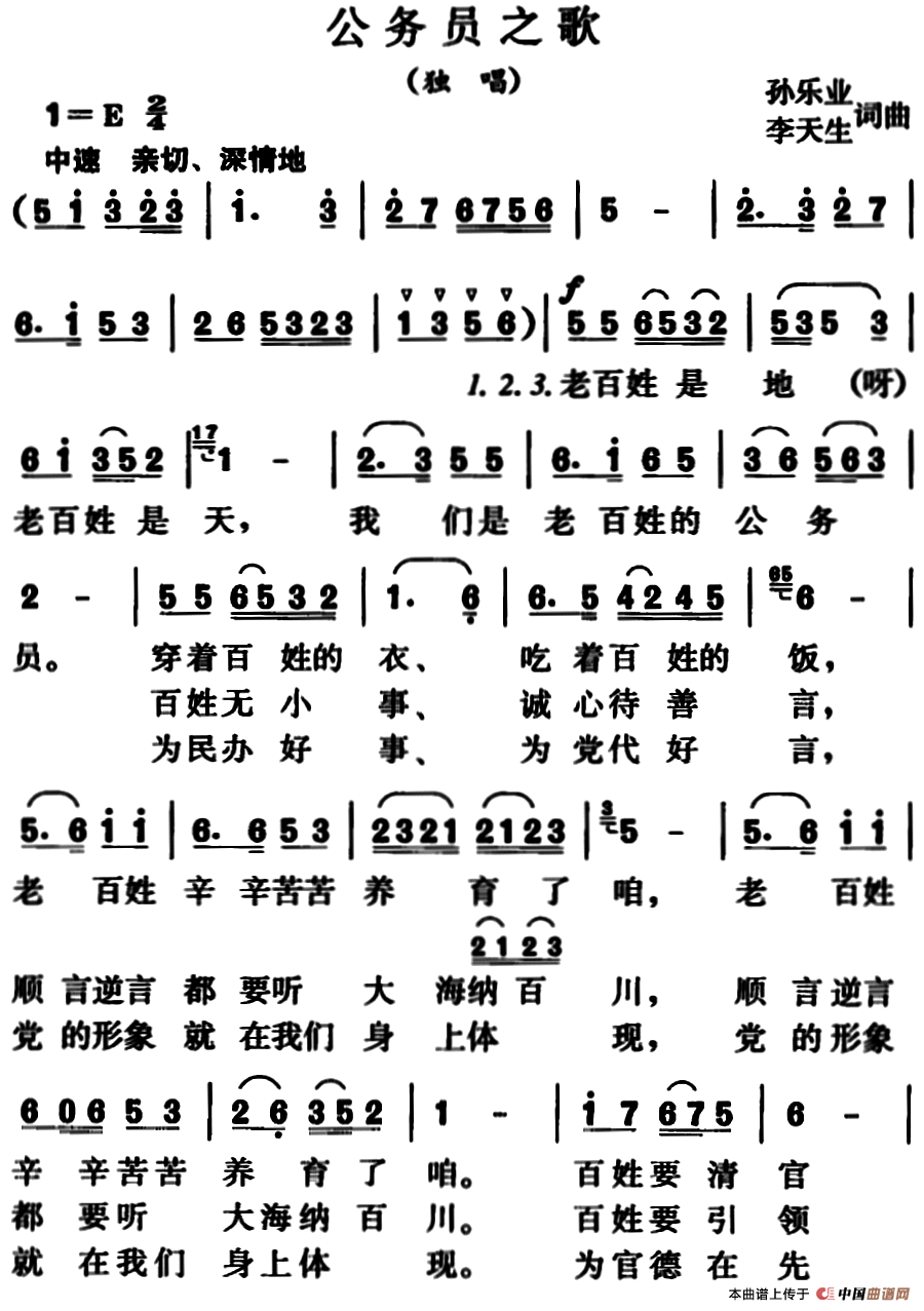 作词:孙乐业、李天生 作曲:孙乐业、李天生 来源:中国曲谱网 上传:热爱音乐88