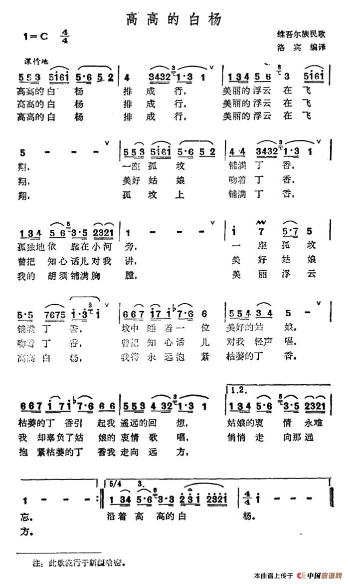 关于《高高的白杨》曲谱的评论