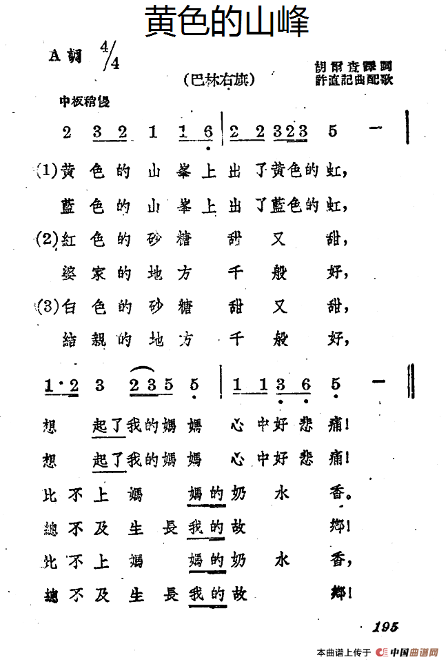 作曲:蒙古族民歌、许值记曲配歌 来源:《中国曲谱网》 上传:秋叶起舞