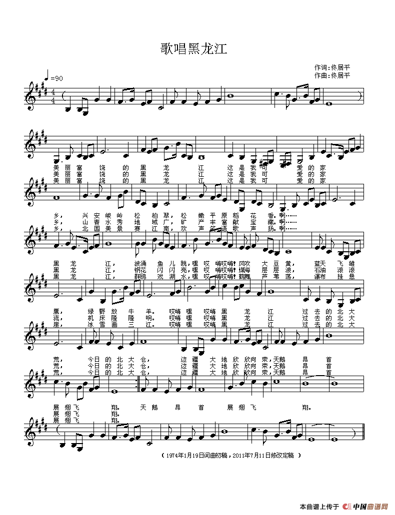 《歌唱黑龙江》一歌,写于1974年1月19日,2011年7月11日进行了修改,2013年2月26日上传到5sing中国原创音乐基地。