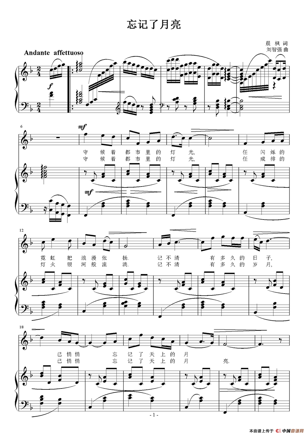 致谢:《中国曲谱网》衷心感谢作者老师馈赠原版歌谱!
