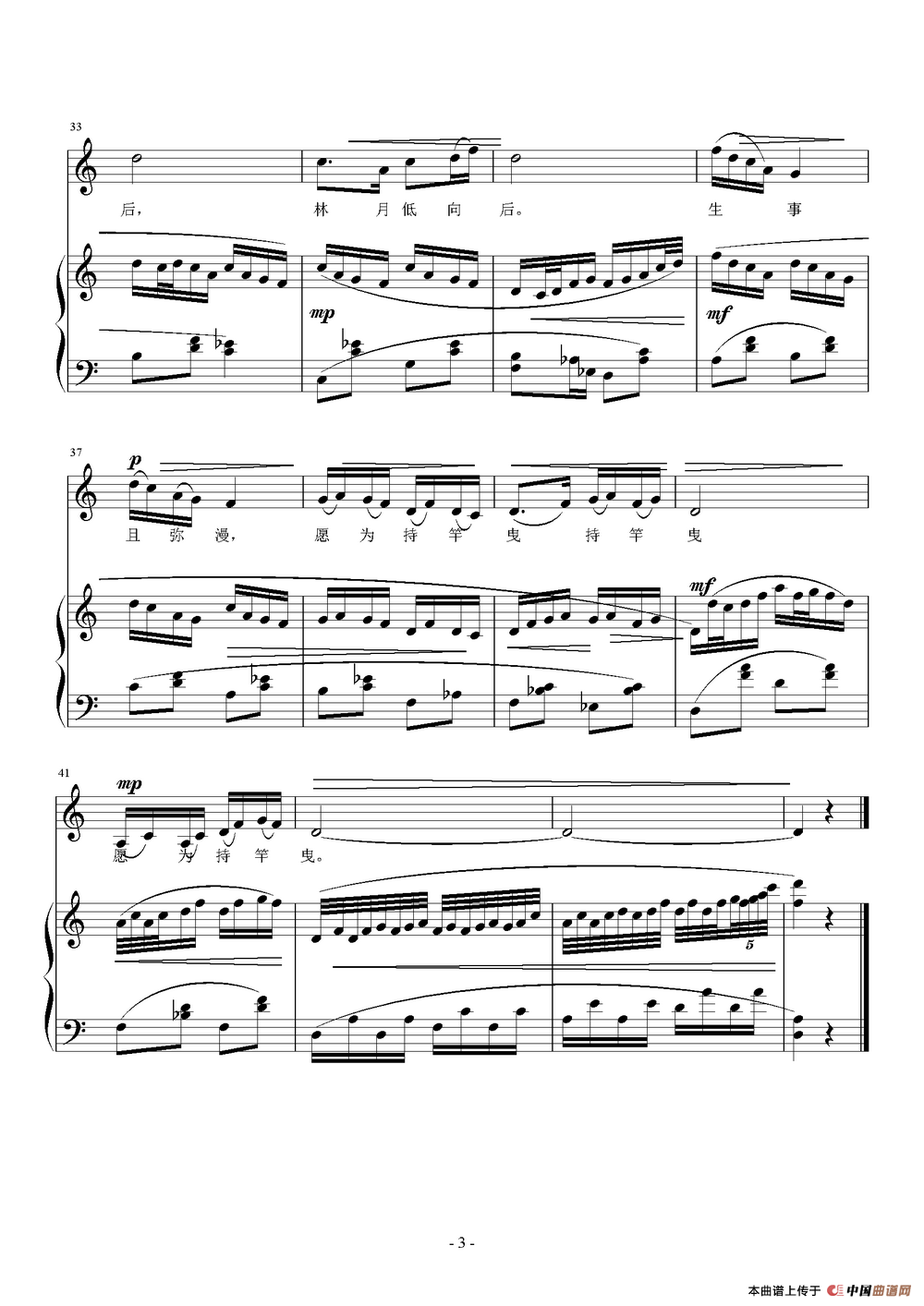 致谢:《中国曲谱网》衷心感谢作者老师馈赠原版歌谱!
