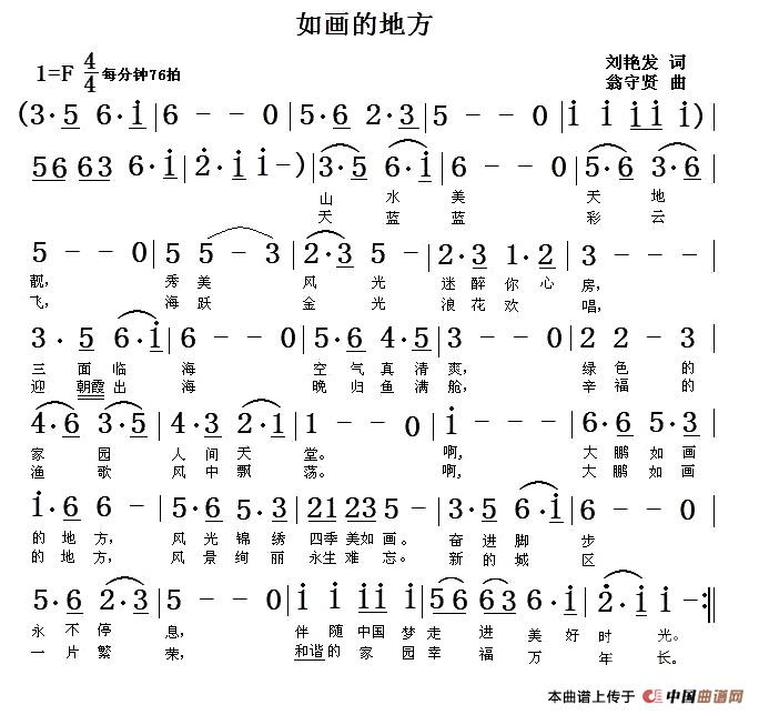 关于《如画的地方》曲谱的评论